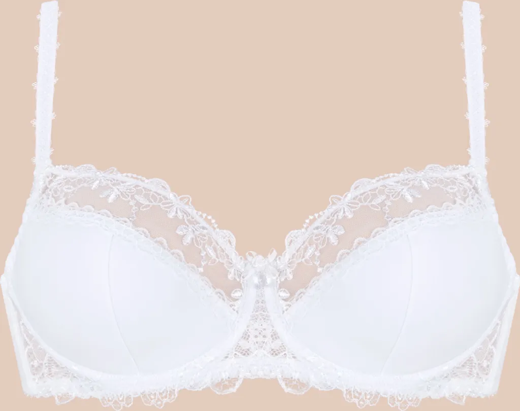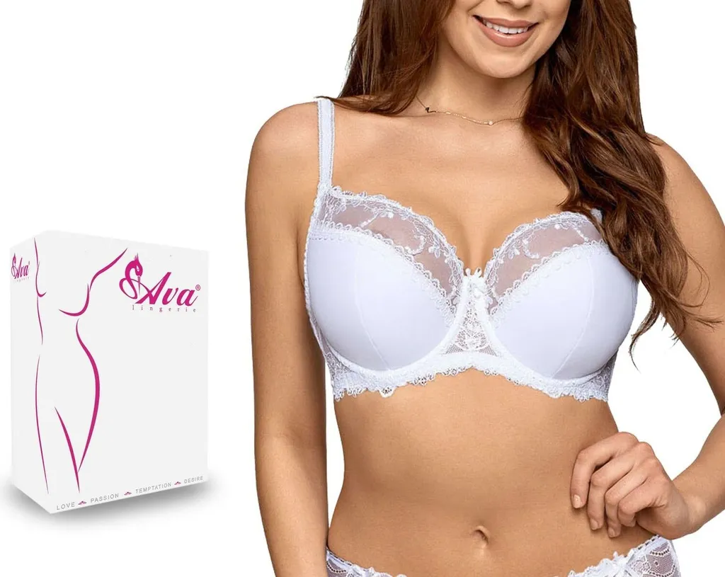 AVA Damen Bügel BH Dessous Mit Spitze Teilgepolstert Große Brüste Unterwäsche 1030, Farbe:Weiß, BH Unterbrustumfang:70, BH Cup Größe:G