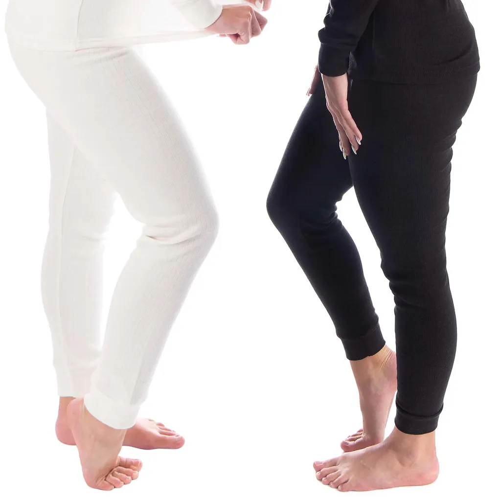 Damen Thermo Unterhosen Set | 2 Lange Unterhosen | Funktionsunterhosen | Thermounterhosen 2er Pack – Creme/Schwarz – S