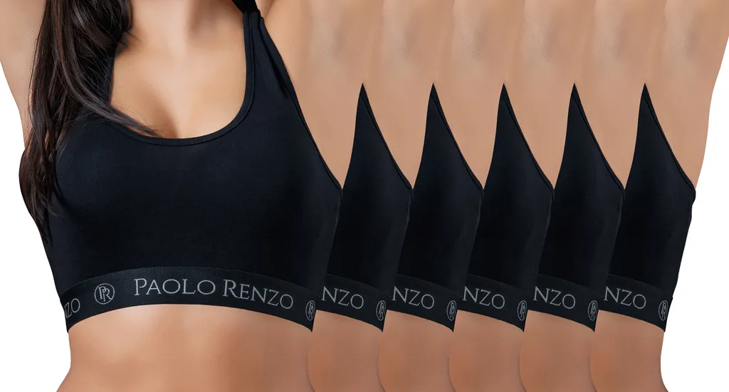 Paolo Renzo Damen Bustier SPORT LINE 6 Stück – Baumwoll Bustier – Sport Bustier – Größe XL – Schwarz