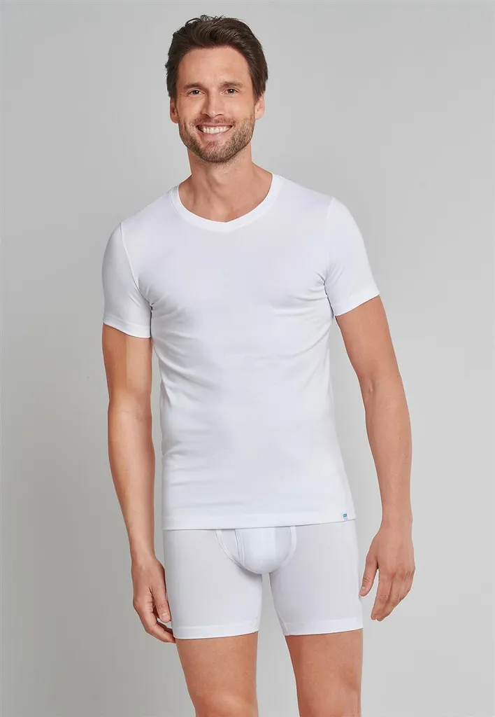 Schiesser Herren T-shirt V-Ausschnitt Long Life Rib Weiss 5/M